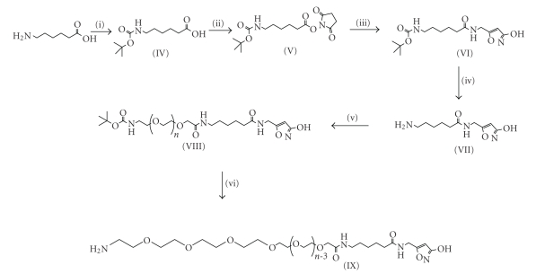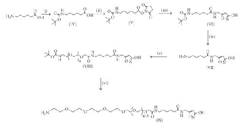 Muscimol, (iv) TFA,(v) BOC-PEG3400-NHS, and (vi) TFA.
