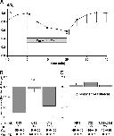 Figure 5. . Effect of external K+o on inward conductance through C13. (Left) Current traces for a C13-expressing oocyte in 10 mM K+ (A), 1 min after increasing K+ to 25 mM (B) and 40 min after the solution change (C). (Bottom right) Time course of inward conductance. (Top right) I-V curves at times A–C.