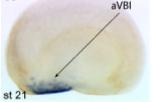 spib (Spi-B transcription factor) gene expression in Xenopus laevis embryo, assayed via in situ hybridization, NF stage 21, lateral view, anterior left, dorsal up.