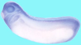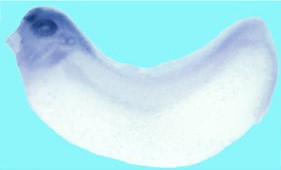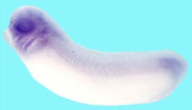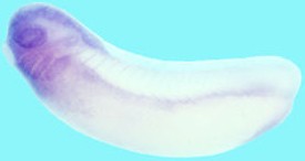 tcf7L1 (transcription factor 7-like 1 (T-cell specific, HMG-box) ) gene expression in Xenopus laevis embryo, NF stage 28, as assayed by in situ hybridization, lateral view, anterior left, dorsal up.