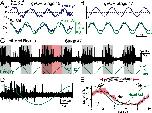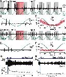 Extraocular nerve discharge during vertical axis rotation in larval Xenopus. AâF, Vertical axis rotation designed to minimize utricle activation and maximally activate one vertical canal pair (C, inset) modulates the spike discharge of the superior (Sup) oblique nerve in stage 47 animals (AâC) but does not modulate nerve activity in stage 46 animals (DâF). B and E show one cycle of the recordings in A and D at an extended time scale, respectively; the average ± SD (red area) of five animals over 30 cycles is summarized in C and F, respectively. G, H, A brief pressure pulse of endolymph Ringer's solution into the ipsilateral (Ipsi) posterior (Post) (G) and contralateral (Contra) anterior (Ant) vertical semicircular canal (H) in the same stage 46 specimen shown in DâF modulated the discharge of the superior oblique nerve. The scale bar in H also applies to G.