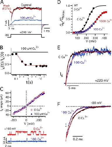 Morera, External copper inhibits the activity of the large-conductance calcium- and voltage-sensitive potassium channel from skeletal muscle. 2003, Pubmed