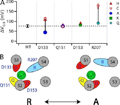 An extracellular Cu2+ binding site in the voltage sensor of BK and Shaker potassium channels.