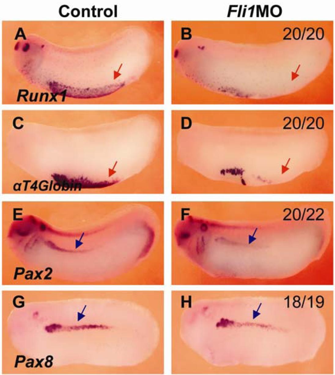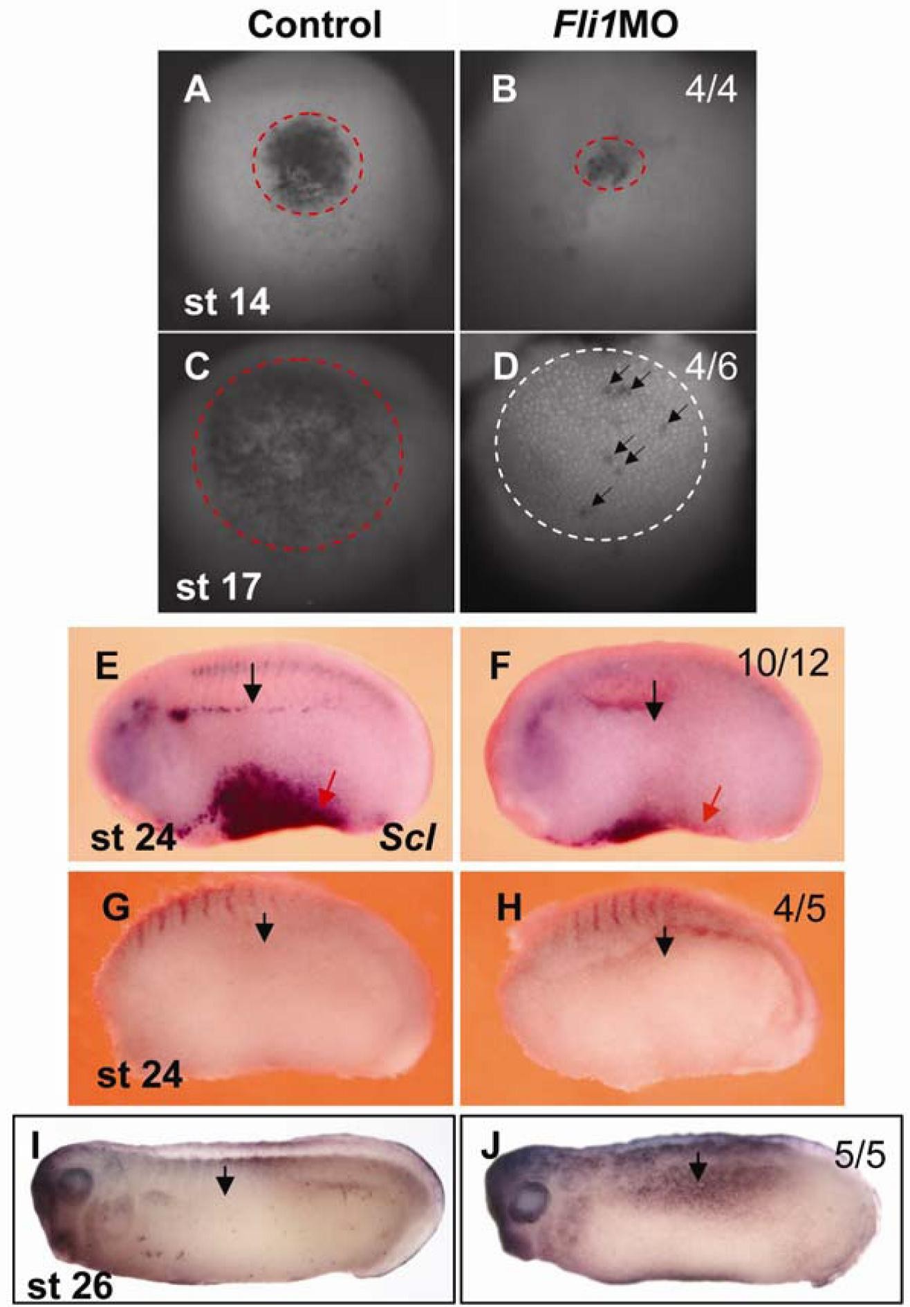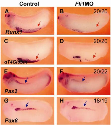40 ng Fli1 MO was injected into the DMZ at the 4/8 cell stage and embryos were grown