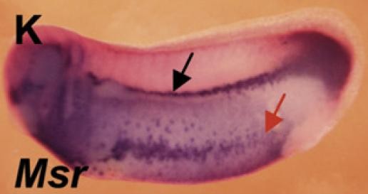 tal1 (T-cell acute lymphocytic leukemia 1) gene expression in Xenopus laevis embryo, assayed via in situ hybridization, NF stage 24, lateral view, anterior left, dorsal up.