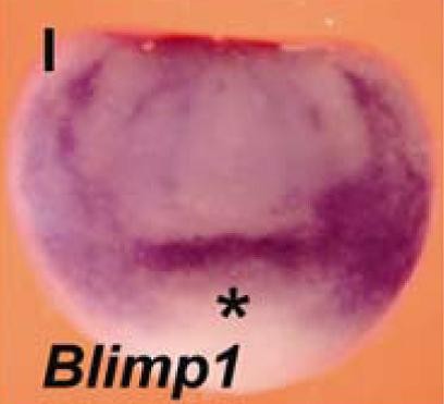 prdm1(PR domain containing 1) gene expression in stage 17 Xenopus laevis embryos as assayed by in situ hybridization.