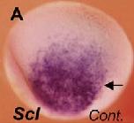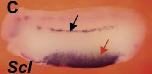 clear (D, white dots within white circle) and little Scl expression remains (D, black