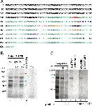 Supplementary Fig. S2. Identification of trans-acting factors that bind to the Shirin 3â²UTR by RNA affinity chromatography and mass spectrometry. (A) Amino acid sequence of hnRNPA/B and of the different peptides determined by mass spectrometry from purified p50 (underlined). The 9 peptides, some of which overlapped, all mapped to Xenopus A/B-type hnRNP. (B) To confirm that the p50 purified protein is hnRNPA/B, we immunoprecipitated the complex p50 UV cross-linked to Shirin 3â²UTR probe. 32P-labeled Shirin 3â²UTR was incubated with tadpole protein extracts, UV cross-linked to bound proteins and immunoprecipitated using an antiserum directed against hnRNPA/B (kind gift of S. Pinol-Roma) (lane 2) or preimmune serum as negative control (lane 3). Only the hnRNPA/B antiserum immunoprecipitated specifically the Shirin 3â²UTR/protein complex following UV cross-linking experiment (lane 2). Lane 1 shows the polypeptide complex UV cross-linked before immunoprecipitation. This result is in agreement with the fact that ARE motifs binding sites for hnRNPA/B (C) Amino acid sequence of Ilf-2/NFAT and of the different peptides identified by mass spectrometry from purified p46 (underlined). The 16 peptides, some of which overlapped, all matched to and covered about 30% of Xenopus Ilf2/NFAT sequence.