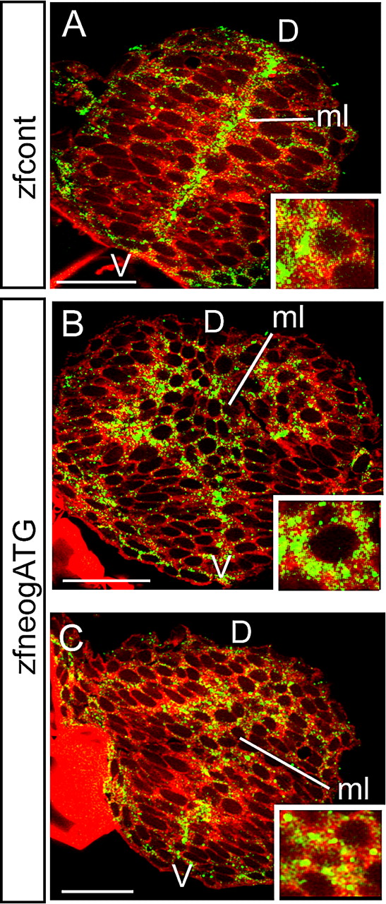 injected with zfcont MO. B, C, Injection of the zfneogATG MO resulted in loss of an obvious