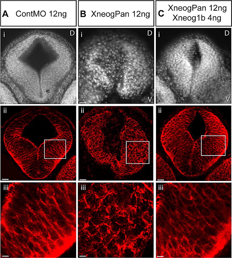with XneogPanMOrescues neuraltubemorphology. Aiii,BiiiandCiiiare highermagnification of images of boxed areas in Aii,Bii