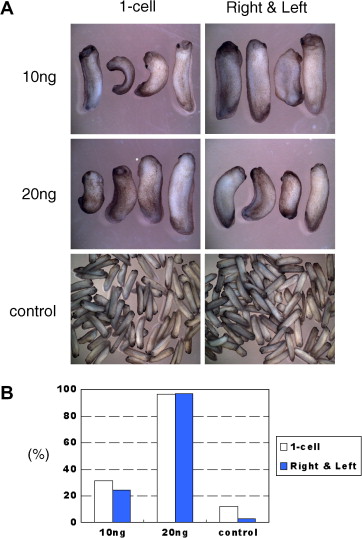into 1-cell embryos (1-cell) and both blastomeres of 2-cell embryos (right and left).