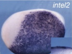 itln2 (intelectin 2) gene expression in Xenopus laevis embryo, assayed via in situ hybridization, NF stage 14, lateral view, anteriorleft, and in section (inset)
