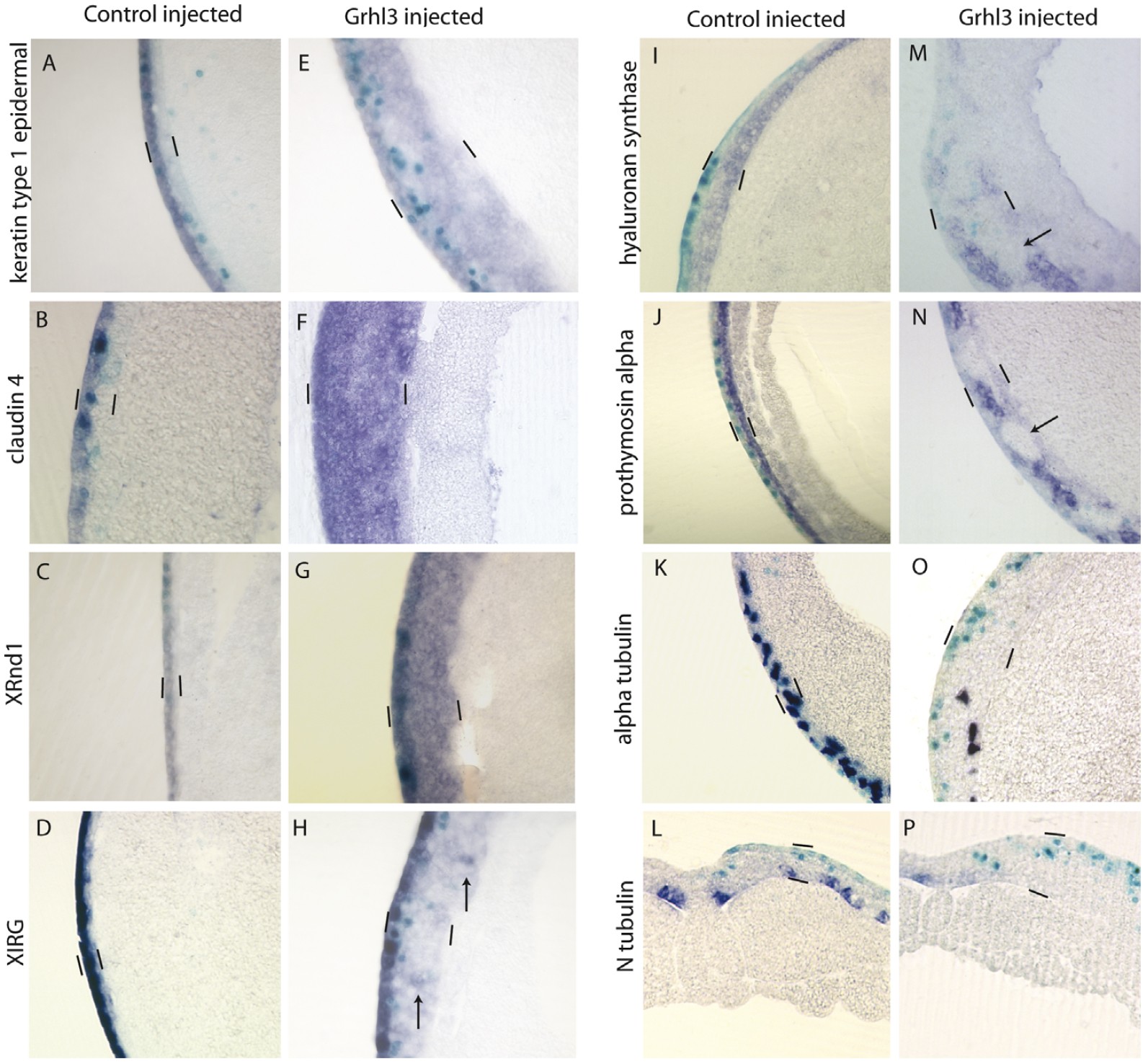 Grhl3 but not GFP control injections caused an expansion of the superficial cell markers (E�H). An exception was XIRG which unlike the other