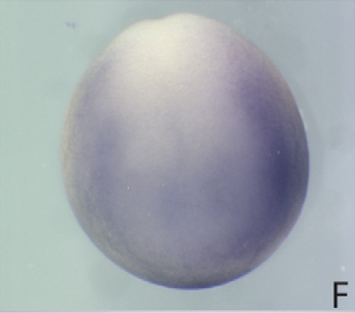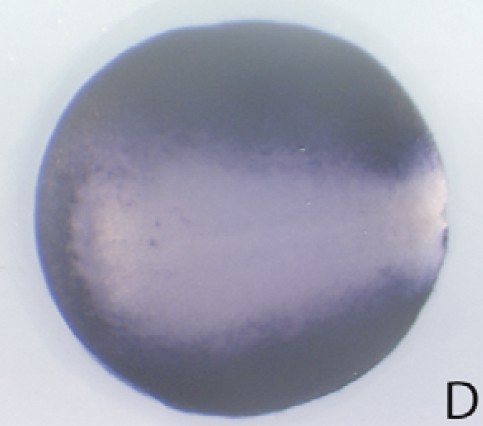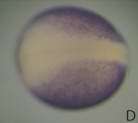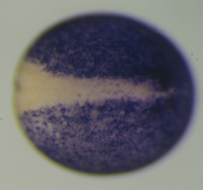 rnf222 (ring finger protein 222) gene expression in a Xenopus laevis embryo, NF stage 14, as assayed by in situ hybridization, dorsal view, anterior left.