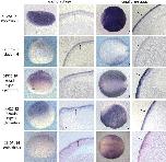 in situ marker (purple), as indicated. The sections are transverse and show the epidermal ectoderm except for N tubulin which shows the neural ectoderm.