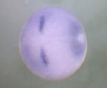 fgf8 (fibroblast growth factor 8) gene expression in Xenopus tropicalis embryo, assayed via in situ hybridization, NF stage 10.5, blastoporal view, dorsal up.