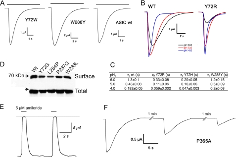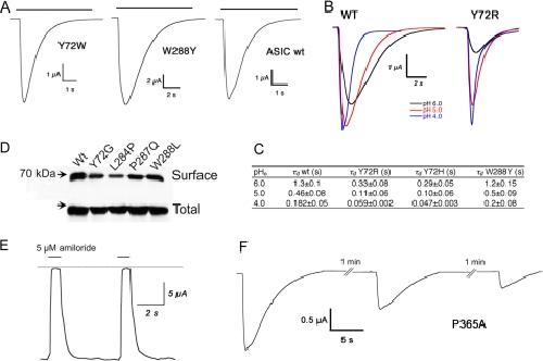 F, currents of mutant ASIC1-P365A show decreased in the magnitude of