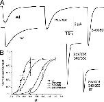 ± 0.1. B, pH response curves. Lines are fits to the Hill