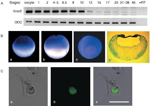 Xzar2 RNA. (A) RT-PCR analysis of Xzar2
