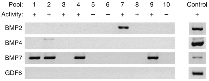 the clones encoding BMP-2, -4, -7 and GDF6. First strand cDNA