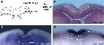 Figure 4. Shroom expression in neural plate. A: Schematic depicting cross-section view of Xenopus neurula. B: Shroom1 expresses in the deep layer of neuroepithelial cells. C: Shroom2 expresses in the deep layer. D: Shroom3 expresses in the superficial layer. White dashed lines indicate the border between superficial layer and deep layer. White solid lines indicate the border between neural plate and mesodermal tissue.