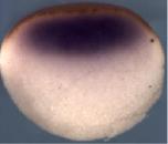 shroom1 ( shroom family member 1 ) gene expression in Xenopus laevis embryos, NF stage6.5, as assayed by in situ hybridization. Animal up, vegetal down.
