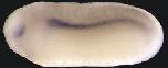 SMOC1 (SPARC related modular calcium binding 1) gene expression in Xenopus laevis embryos, NF stage 24, as assayed by in situ hybridization, lateral view, anterior left, dorsal up.