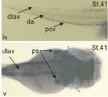 dlav: dorsal longitudinal anastomosing vessel ; da: dorsal aorta; pcv: posterio cardinal vein, ps: pronephric sinus.