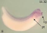 enpp4 (ectonucleotide pyrophosphatase/phosphodiesterase 4) gene expression in Xenopus laevis embryos, NF stage 32, as assayed by in situ hybridization, lateral view, anterior right, dorsal up.