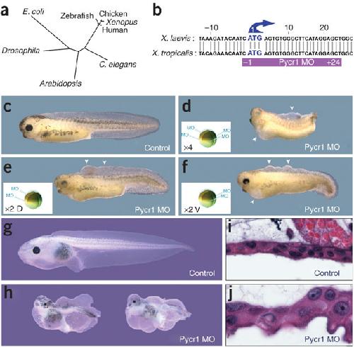 Autosomal recessive cutis laxa (ARCL) describes a group of syndromal disorders that are often associated with a progeroid appearance, lax and wrinkled skin, osteopenia and mental retardation. Homozygosity mapping in several kindreds with ARCL identified a candidate region on chromosome 17q25. By high-throughput sequencing of the entire candidate region, we detected disease-causing mutations in the gene PYCR1. We found that the gene product, an enzyme involved in proline metabolism, localizes to mitochondria. Altered mitochondrial morphology, membrane potential and increased apoptosis rate upon oxidative stress were evident in fibroblasts from affected individuals. Knockdown of the orthologous genes in Xenopus and zebrafish led to epidermal hypoplasia and blistering that was accompanied by a massive increase of apoptosis. Our findings link mutations in PYCR1 to altered mitochondrial function and progeroid changes in connective tissues.