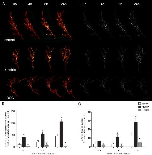Tang, Netrin-1 induces axon branching in developing cortical neurons by frequency-dependent calcium signaling pathways. 2005, Pubmed