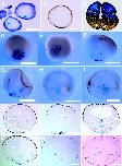 Figure 5. Spatial expression patterns of Xtcat-2 mRNA analyzed by whole-mount in situ hybridization. A: Fertilized egg (St.1). B: Eight-cell stage embryo (St. 4). C: Mid-gastrula (St. 11). D: Late neurula (St.18). E: Early tail bud (St. 26). F: Late tail bud (St. 30). G: No cells expressing Xtcat-2 mRNA are observed at St. 40. H,I: Section of Xtcat-2 stained fertilized (H) or eight-cell stage (I) embryo revealed the localized expression of Xcat-2 mRNA. J,K: Sagittal section of Xtcat-2-stained St. 11 (J) or St. 18 (K) embryo. L,M: Transverse section of tail bud stained with Xtcat-2 at the same stage of E and F, respectively. Scale bars = 500 mu m in A-G, 200 mu m in H-M.
