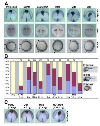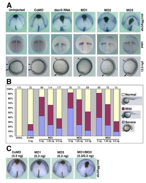 Fig. 2. Specificity and effectiveness of dscr5 MOs.