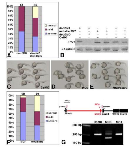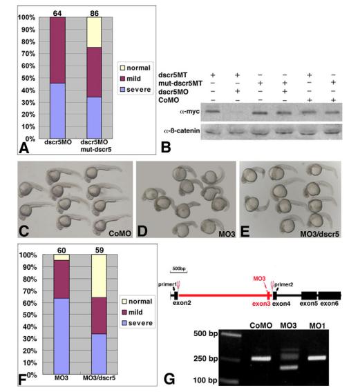 coinjected with MO3 and dscr5 RNA. (F) Summary of the