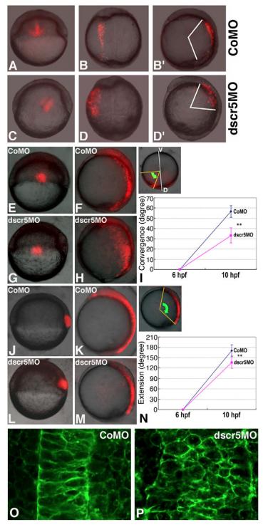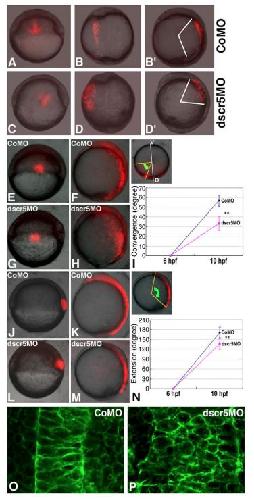 with dscr5MO-injected cells. (D,D) Dorsal (D) and lateral (D) views of