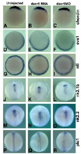stained by ptc1 in dscr5 RNA- and dscr5MO-injected embryos.