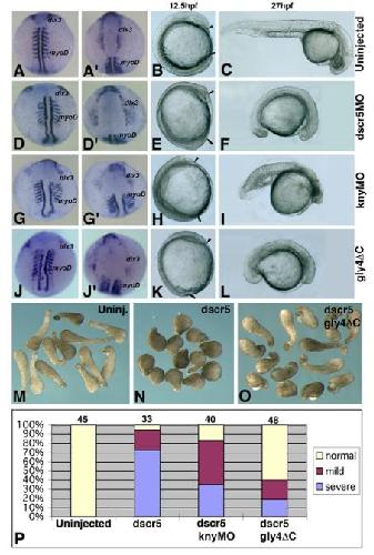 injected with dscr5MO (I) or gly4ΔC RNA (K).