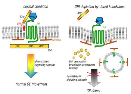signaling and CE movements. Dscr5 functions in the GPI biosynthesis