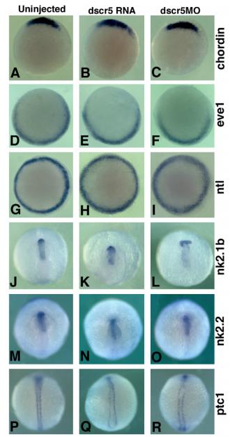 shield stage of zebrafish embryos. (A) Absence of effect of dscr5