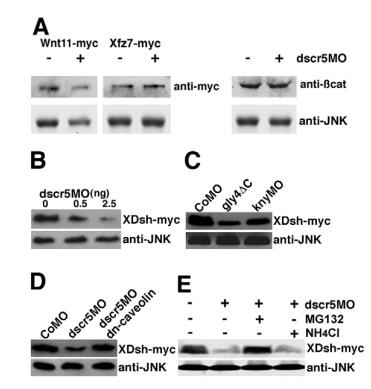 knockdown on the stability of Wnt11-Myc, XFz7-Myc and endogenous