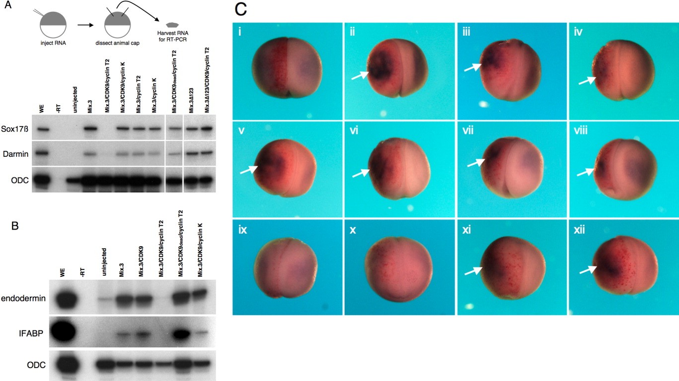 CDK9/cyclin complexes modulate endoderm induction by direct interaction with Mix.3/mixer.