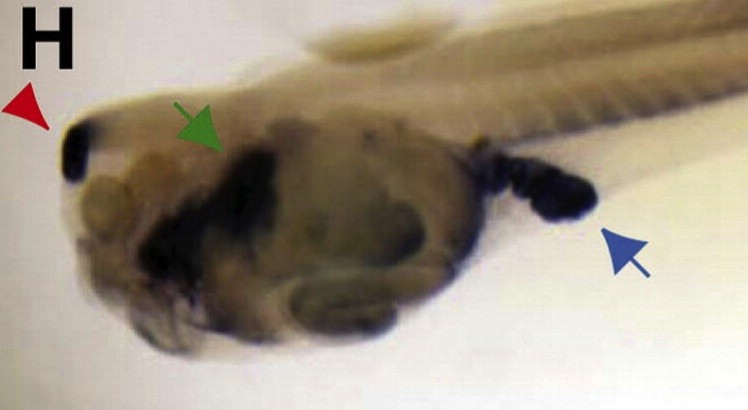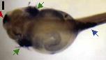dazap1 (DAZ associated protein 1) gene expression in Xenopus laevis embryos, NF stage 32, as assayed by in situ hybridization, lateral view, anterior left, dorsal up.