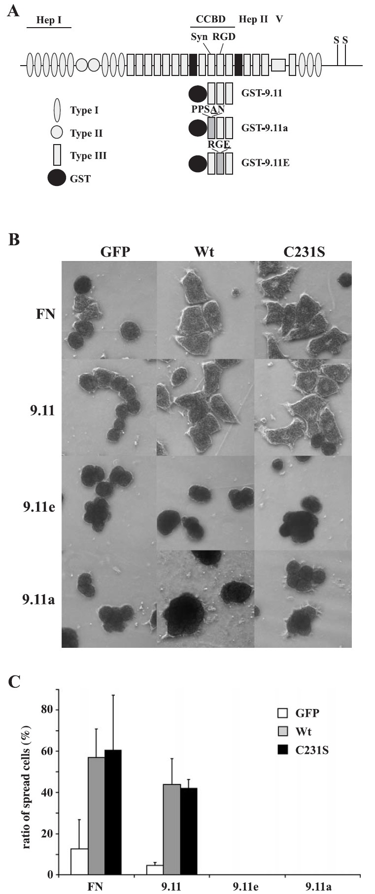 spreading. (A) Schematic representation of FN (FN) and the various GSTFN