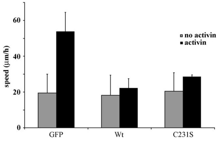 without activin-A. Measure of cell motility was performed on 10 cells for