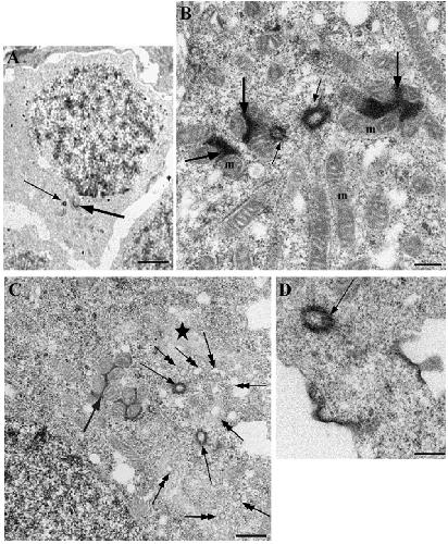 mitochondrion (m) (D). Scale bar is equal to 150 Am in A, 4 Am in B and C, and 150 nm in D.