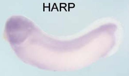 smarcal1 (SWI/SNF related, matrix associated, actin dependent regulator of chromatin, subfamily a-like 1) gene expression in Xenopus laevis embryo, assayed via in situ hybridization, NF stage 28, lateral view, anterior left, dorsal up.
