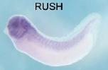 rad54l2 (RAD54-like 2) gene expression in Xenopus laevis embryo, assayed via in situ hybridization, NF stage 28, lateral view, anterior left, dorsal up.
