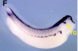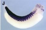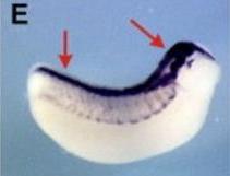 pax3 (paired box 3) gene expression in Xenopus laevis embryo, assayed via in situ hybridization, NF stage 32, lateral view, anterior right, dorsal up.
