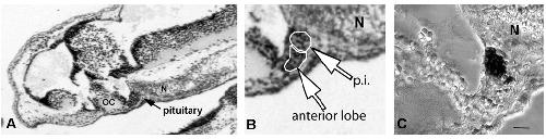 MSH. Note that only the pars intermedia exhibits a-MSH immunoreactivity. N, notochord; OC, optic chiasma. Scale Bar = 100 lm.