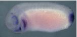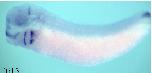 fgf3 (fibroblast growth factor 3) gene expression in Xenopus tropicalis embryo, assayed via in situ hybridization, NF stage 22, lateral view, anterior left, dorsal up.